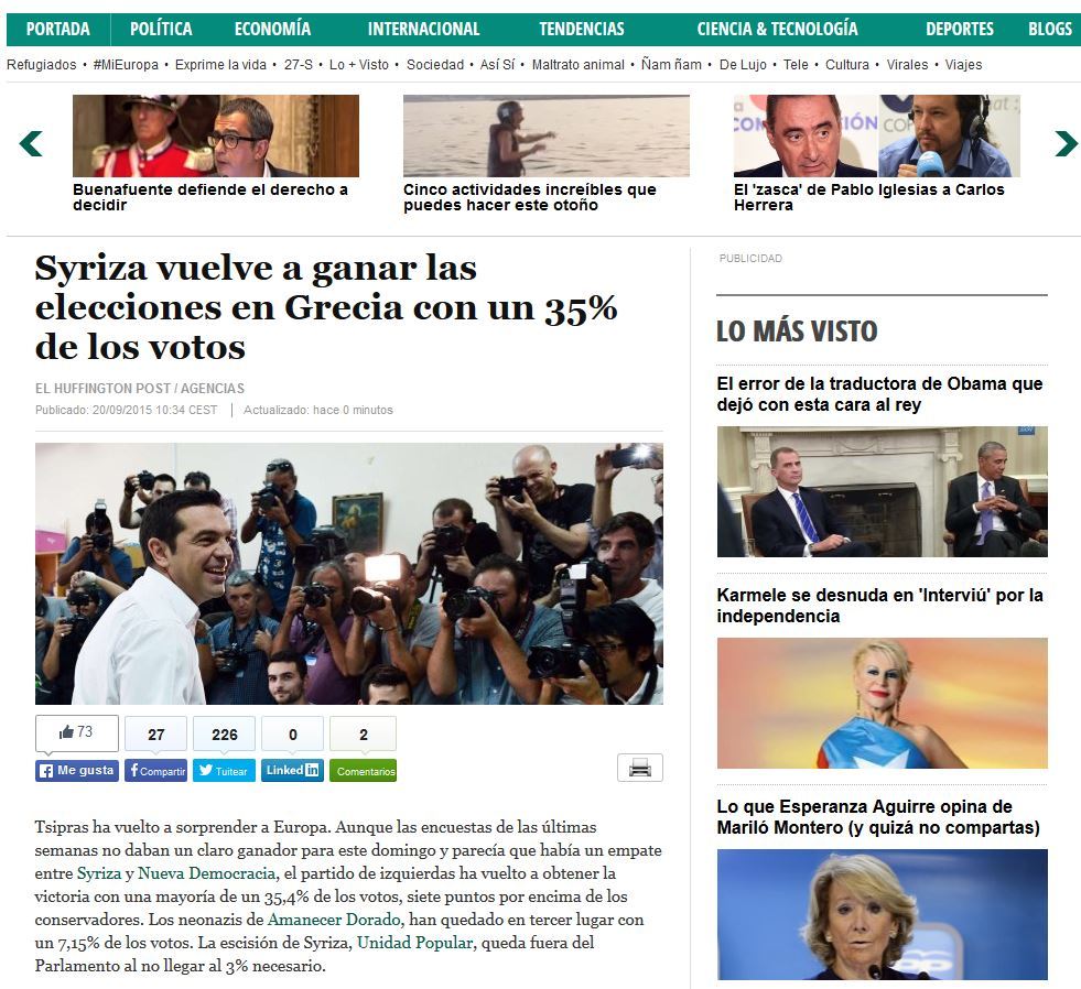 Παράλληλα, η ιταλική Corriere della Sera μπορεί να προβλέπει νίκη για τον ΣΥΡΙΖΑ, αλλά επισημαίνει ότι η προσέλευση στις κάλπες ήταν χαμηλή συγκριτικά με τις εκλογές του Ιανουαρίου.