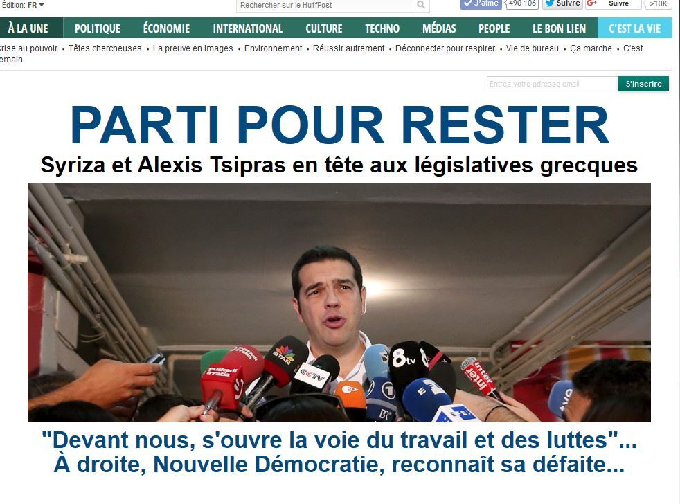 O Αλέξης Τσίπρας ήταν προορισμένος να κερδίσει το στοίχημά του, σχολιάζει η γαλλική εφημερίδα Le Monde ενώ στον τίτλο της αναφέρει: "Τα exit polls δίνουν μικρό προβάδισμα στον ΣΥΡΙΖΑ".