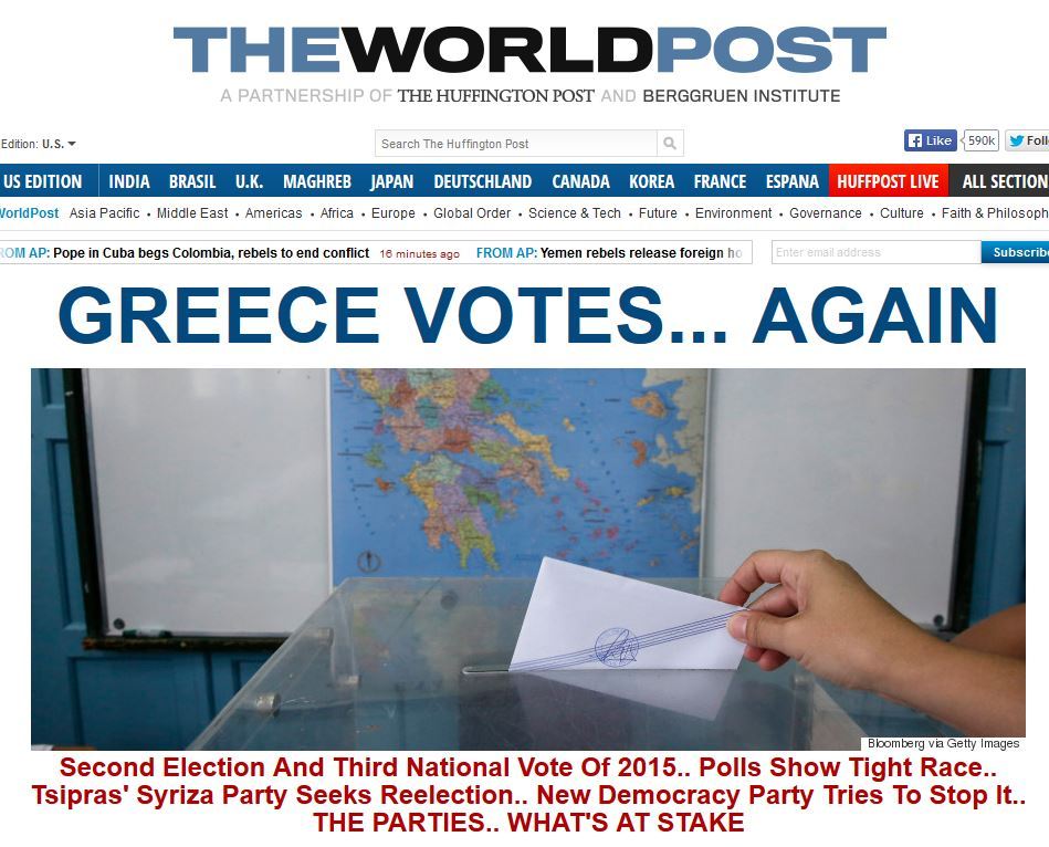Το βλέμμα στραμμένο και σε αυτή την εκλογική αναμέτρηση έχουν τα ξένα ειδησεογραφικά πρακτορεία, σήμερα, Κυριακή, 20 Σεπτεμβρίου. Ωστόσο, στην Αθήνα εν αντιθέσει την τελευταία αναμέτρηση στις 5 Ιουλίου λόγω δημοψηφίσματος ή με εκείνη της 25ης Ιανουαρίου, βρίσκονται λιγότεροι ξένοι ανταποκριτές.