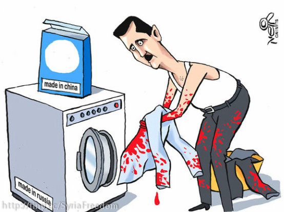Δεν λείπουν όμως και οι εξόχως εύστοχες γελοιογραφίες που συναντά κανείς στο διαδίκτυο οι οποίες επικρίνουν τόσο τον ρόλο της Μόσχας όσο όμως και της Ουάσινγκτον και των αραβικών χωρών στο θέμα της Συρίας.